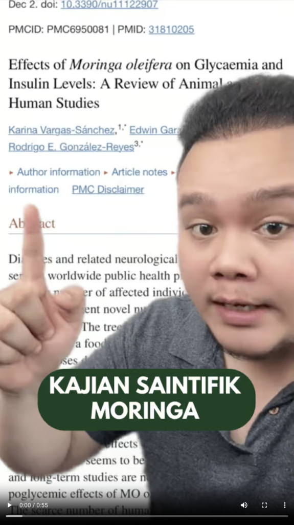 “Kajian klinikal Dr. Nordin menunjukkan Moringa mampu menyokong tekanan darah & gula normal.”
