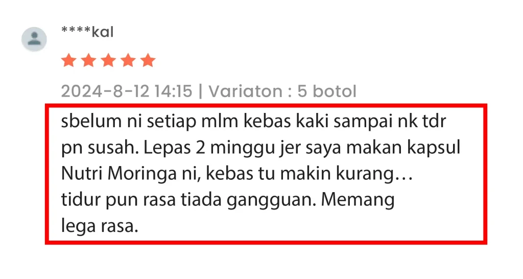 "Sebelum ni tiap malam kaki rasa kebas, lepas amalkan 2 minggu rasa kebas makin kurang"