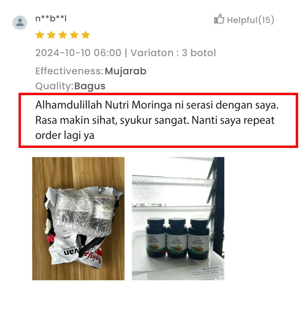 Berdasarkan Feedback Pengguna Nutri Moringa Niska Sebelum Ini